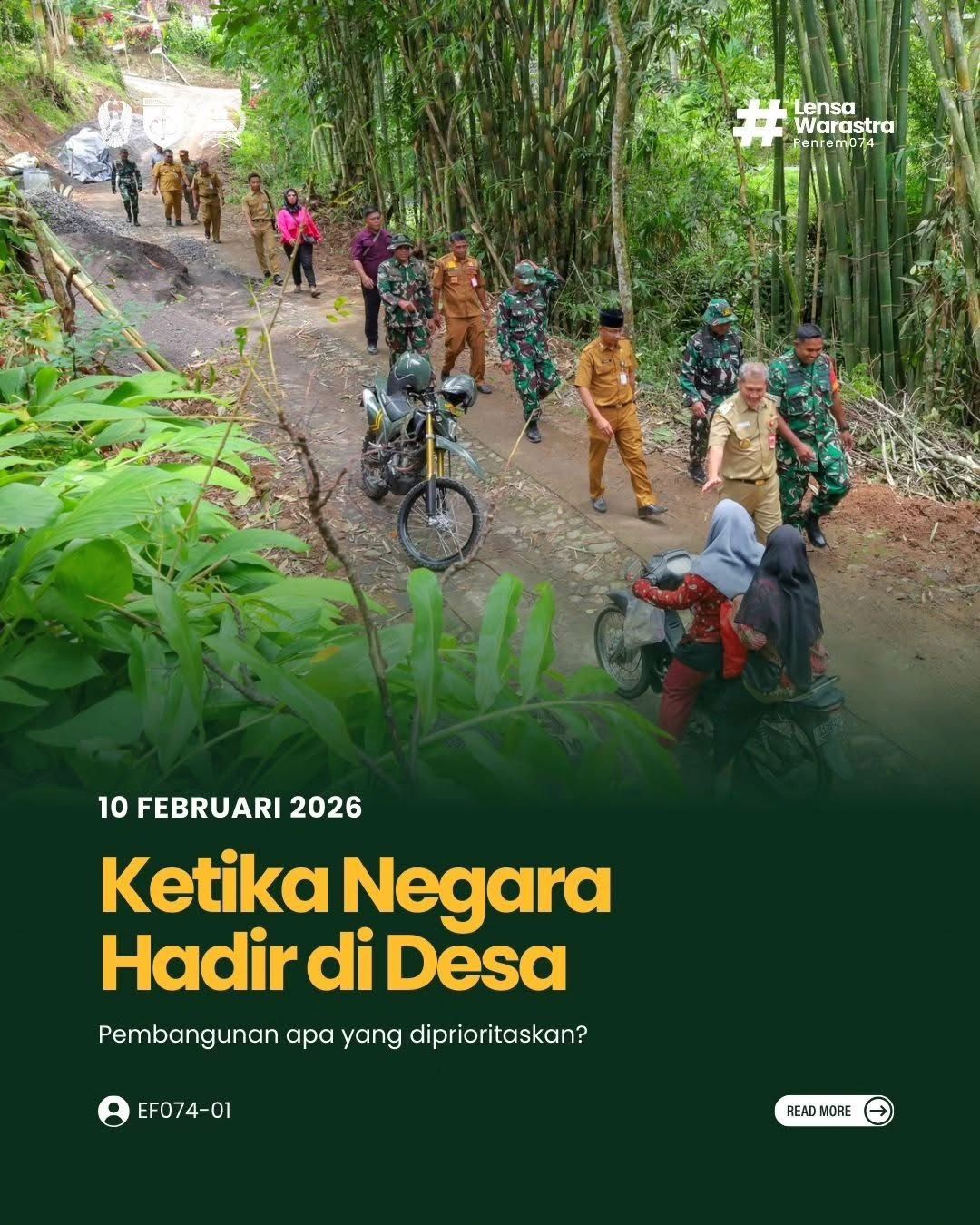Kasrem 074/Warastratama Letkol Czi Bambang Setyo Triwibowo, S.E., M.Han., menghadiri Upacara Pembukaan TNI Manunggal Membangun Desa (TMMD) Reguler ke-127 TA 2026 Kodim 0728/Wonogiri di Lapangan Desa Kembang, Kecamatan Jatipurno, Kabupaten Wonogiri, Selasa (10/02/2026). Upacara pembukaan dipimpin oleh Bupati Wonogiri Setyo…