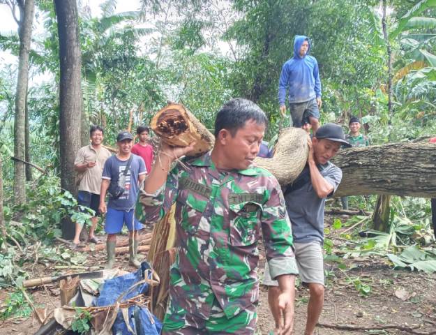 Rumah Warga Tertimpa Pohon, Danramil Wonosegoro Pimpin Bantu Evakuasi