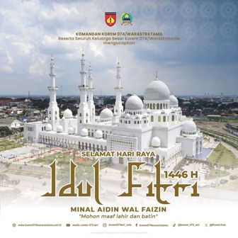 Komandan Korem 074/Warastratama Beserta Seluruh Keluarga Besar Korem 074/Warastratama mengucapkan “Selamat Hari Raya Idul Fitri 1446 H”