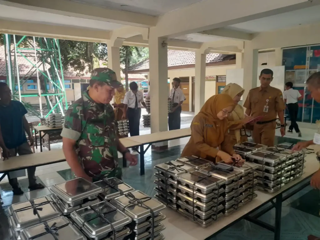 Babinsa Joyotakan Koramil 03/Serengan Kodim 0735/Surakarta Serka Sudiyono melaksanakan Pendampingan pendistribusian Makan Bergizi Gratis (MBG) di SMP Islam Bakti Jl. Wahid Hasim Rt 03 Rw 01 Joyotakan Serengan Kota Surakarta, Kamis Pukul 10.00 Wib (27/11/2025).