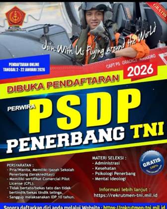 PENDAFTARAN PERWIRA PSDP PENERBANG TNI TAHUN 2026 TELAH DIBUKA