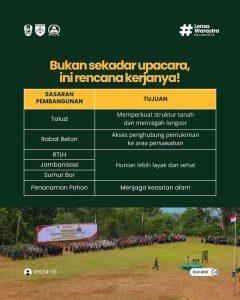 “TMMD bukan sekadar kegiatan rutin, melainkan wujud nyata sinergi dan gotong royong antara TNI, Polri, pemerintah, dan masyarakat untuk meningkatkan kesejahteraan warga,” tegasnya.