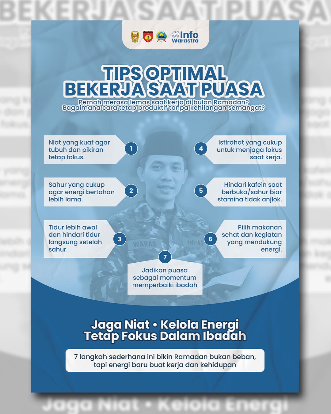 Bulan Ramadan tidak menghalangi kita untuk tetap produktif dan semangat dalam bekerja. Dengan pengelolaan energi yang tepat dan pola hidup sehat, semua kegiatan dapat dijalankan secara maksimal.