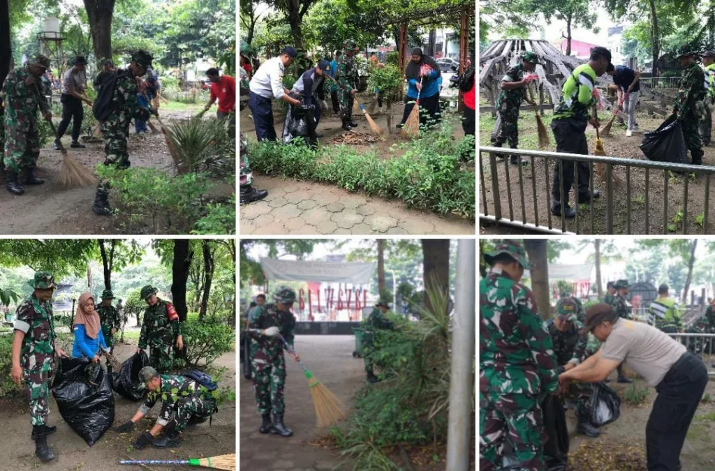 Kerja bakti bersama yang difokuskan dengan pembersihan titik-titik tumpukan sampah liar ini melibatkan personel gabungan TNI-Polri, Forkopimcam, pemerintah desa dan elemen masyarakat. Mereka bahu-membahu, bergotong-royong membersihkan daun yang jatuh dan tumpukan sampah yang dijadikan tempat pembuangan sampah ilegal.