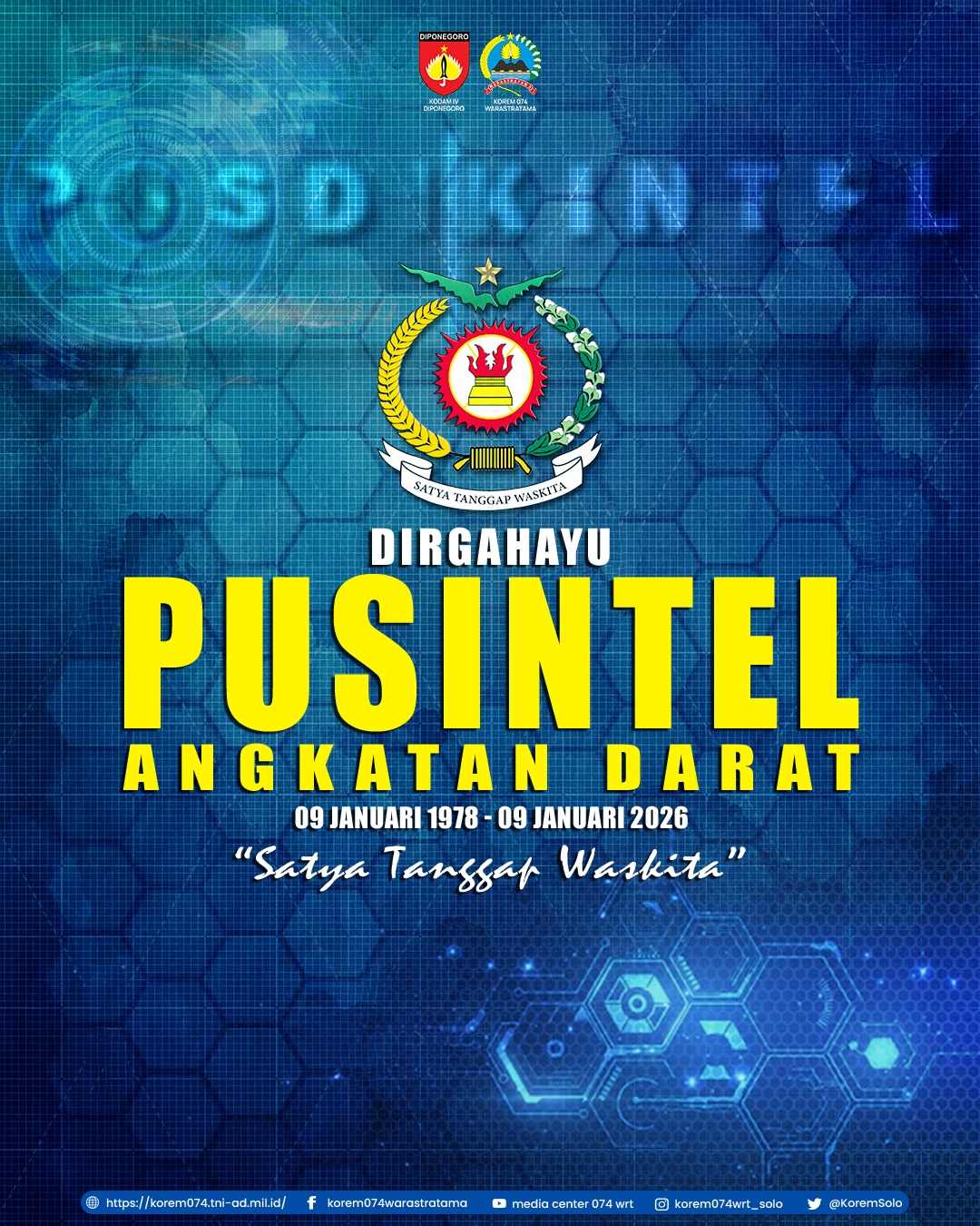 Dirgahayu Pusintel Angkatan Darat “Satya Tanggap Waskita ” 09 Januari 1978 – 09 Januari 2026