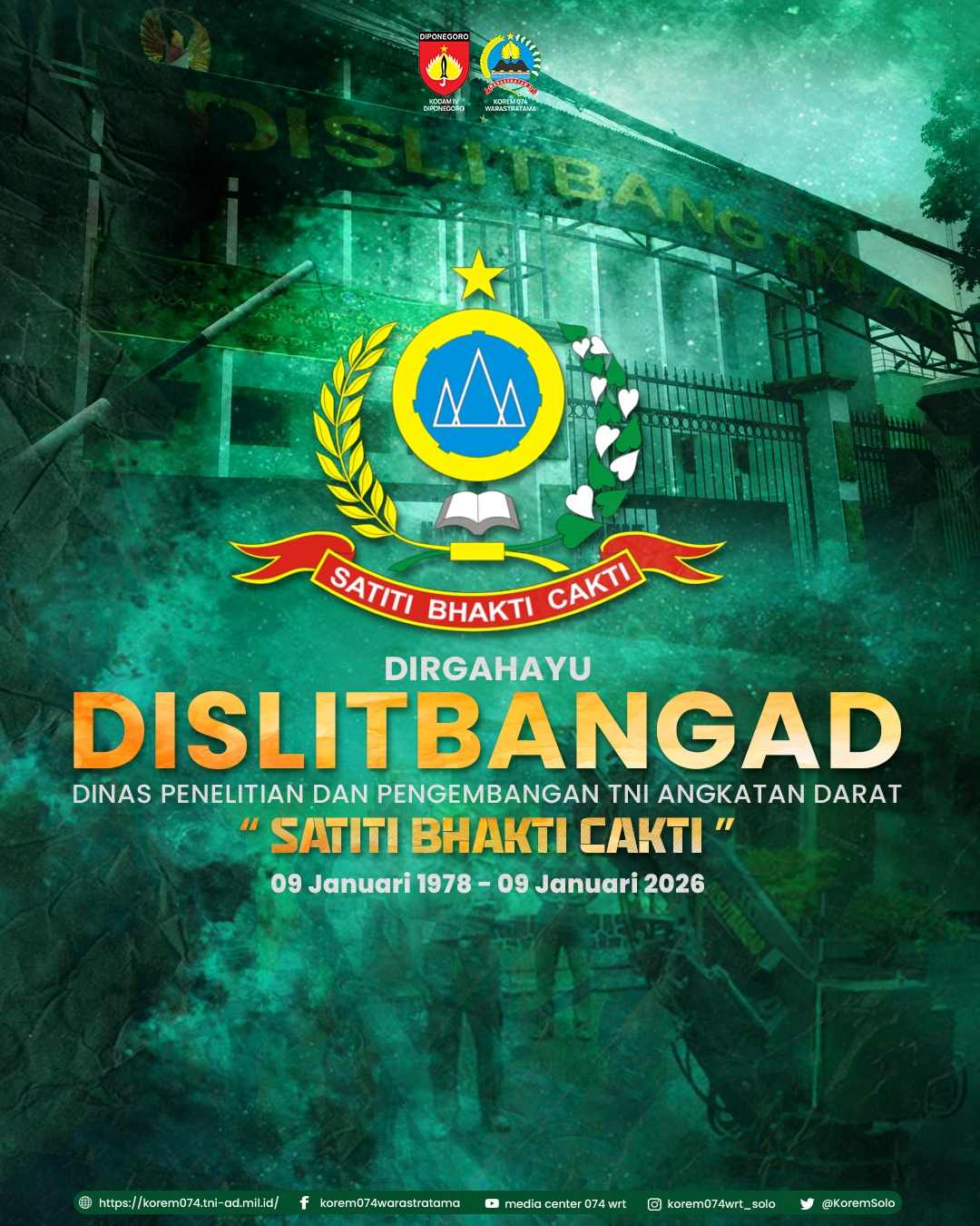 Dirgahayu Dislitbangad “Dinas Penelitian Dan Pengembangan TNI Angkatan Darat” Satiti Bhakti Cakti 09 Januari 1978 – 09 Januari 2026 . . #tni #tniad #dislitbangad