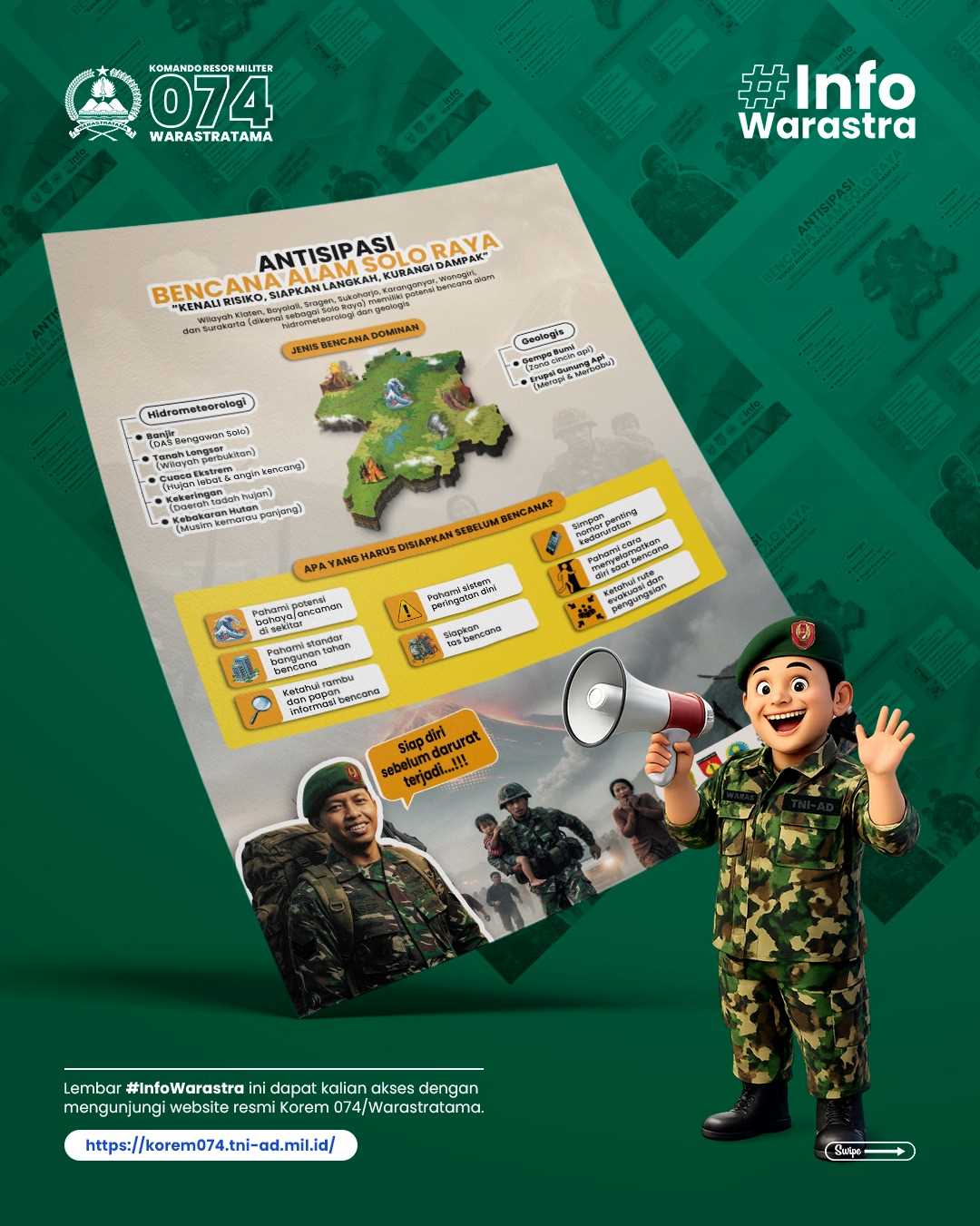 Solo Raya memiliki potensi bencana alam yang perlu diantisipasi bersama. Mulai dari banjir di DAS Bengawan Solo, tanah longsor di wilayah perbukitan, cuaca ekstrem, hingga ancaman geologis seperti gempa bumi dan erupsi Gunung Merapi–Merbabu. Melalui infografis ini, masyarakat diajak untuk…