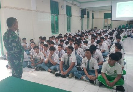 Danramil 02/Banjarsari, Kodim 0735/Surakarta Kapten Inf Mulyono memberikan sosialisasi Persami KKRI (Korps Kadet Republik Indonesia) di SMA Negeri 1 Surakarta, Senin (26/1/2026). Kegiatan ini merupakan bagian dari upaya pembinaan karakter dan kedisiplinan generasi muda, serta meningkatkan kesadaran akan pentingnya bela…