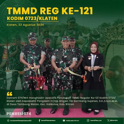 Program TNI Manunggal Membangun Desa (TMMD) Reguler ke-121 yang berada di Desa Tambong Wetan, Kec. Kalikotes, Kab. Klaten resmi di tutup oleh Kapoksahli Pangdam IV/Diponegoro Brigjen TNI Bambang Sujarwo, SH., S.Sos., M.M., mewakili Pangdam IV/Diponegoro Mayjen TNI Deddy Suryadi, S.IP.,…