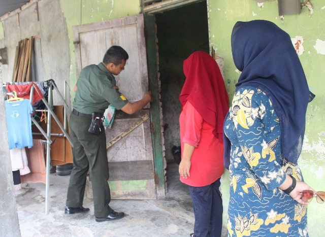 Kepala Desa Tambong Wetan Yuliarti, bersama dengan Bati Bakti TNI Staf Teritorial Kodim 0723/Klaten Serma Rahardian meninjau langsung kondisi rumah Hartini warga Dukuh Jogodayoh RT 5 RW 03 Desa Tambong Wetan Kec Kalikotes Kab Klaten, Minggu (14/7/2024). Hartini seorang pekerja…