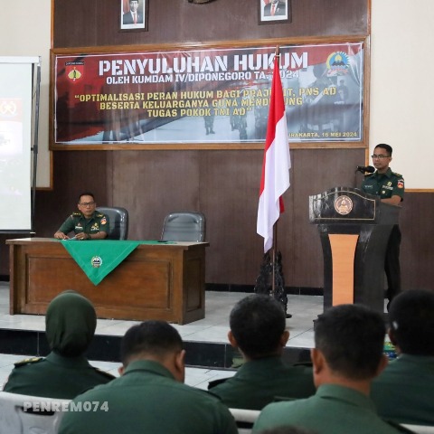 Dalam rangka menumbuhkan dan meningkatkan kedisiplinan serta kesadaran Hukum, Korem 074/Warastratama menggelar penyuluhan hukum kepada Prajurit dan PNS Korem 074/Warastratama, yang dipimpin oleh Pgs. Kasrem 074/Warastratama Letkol Kav Burhanuddin, S.T., mewakili Komandan Korem 074/Warastratama Kolonel Inf Ali Akhwan, S.E., bertempat…