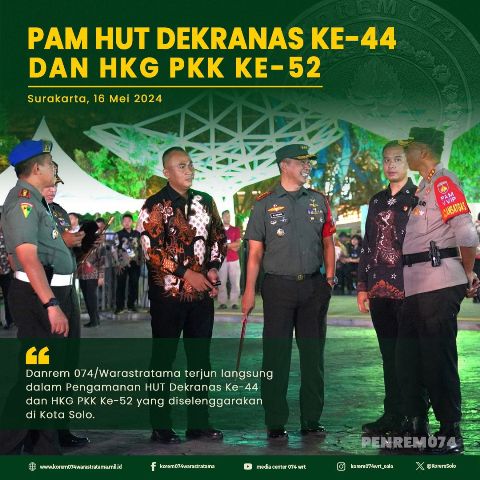 Kunjungan Ibu Negara RI Ibu Iriana Joko Widodo dan Ibu Wapres RI Ibu Wuri Makruf Amin di Surakarta pada Selasa – Kamis (14-16 Mei 2024) mendapatkan pengawalan ketat dari pasukan TNI AD jajaran Korem 074/Warastratama. Danrem 074/Warastratama Kolonel Inf Ali…