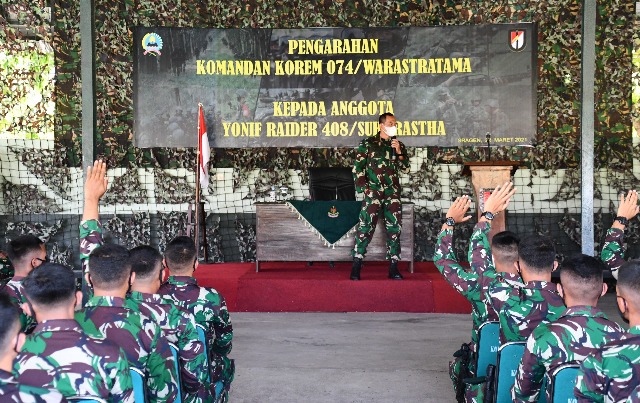 Yonif Raider 408/Suhbrastha adalah Batalyon tempur yang berkedudukan dibawah langsung Korem 074/Warastratama, mendapatkan kunjungan kerja dari Danrem 074/Warastratama Kolonel Inf Deddy Suryadi, S.I.P., Senin (22/03/2021). “Ini kunjungan pertama saya selaku Danrem 074/Warastratama yang baru, saya ingin bertatap muka dan berdialog…