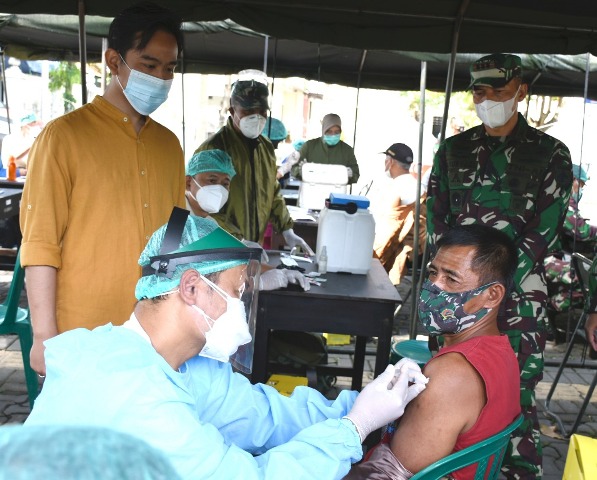 Sedikitnya 1.695 prajurit Babinsa (Badan Pembina Desa) TNI Wilayah Solo Raya menjalani vaksinasi Covid-19 di Depohar 52 Lanud Adi Soemarmo, Karanganyar, Selasa (02/03/2021). Tampak hadir pada kegiatan serbuan vaksinasi tersebut Kasum TNI Letjen TNI Ganip Waskito, Pangdam IV/Diponegoro Mayjen TNI…