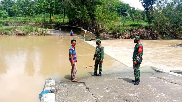 Untuk mengantisipasi terjadinya banjir akibat meluapnya air Sungai Desa Glonggong, Kecamatan Nogosari, Kabupaten Boyolali, Batiwanwil Koramil 13/Nogosari Kodim 0724/Boyolali Pelda Suyatno bersama Kopda Khabib Anhar mengecek debit air sungai, Rabu (13/01/2021). Dalam pantauannya Batiwanwil Koramil 13/Nogosari Kodim 0724/Boyolali Pelda Suyatno…
