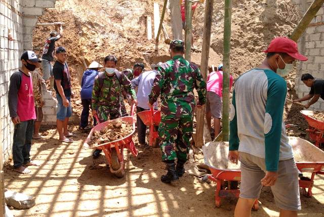 Babinsa Desa Wonotolo anggota Koramil 06/Gondang melaksanakan Karbak membantu membangun rumah warga binaan bertempat di Dk. Mentir RT 25 Ds. Wonotolo Kec. Gondang Kab. Sragen, Selasa (12/01/2021). “Meringankan beban masyarakat adalah tanggung jawab seorang Babinsa dan merupakan bentuk usaha bersama…