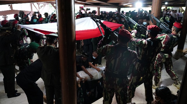 Danrem 074/Warastratama Kolonel Inf Rano Tilaar menghadiri upacara Pemakaman militer Alm. Jenderal TNI (Purn) Wismoyo Arismunandar (Mantan Kasad Periode tahun 1993-1995) di Astana Giri Bangun tepatnya di Cungkup Argosari Desa Karangbangun, Kec. Matesih, Kab. Karanganyar, Kamis (28/01/2021). Bertindak selaku Inspektur…