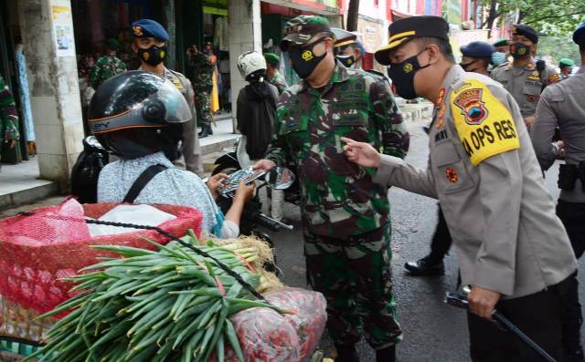 Dalam rangka memutus mata rantai penyebaran Covid-19, Dandim 0724/Boyolali Letkol Inf Aris Prasetyo, S.I.P., M.I.P bersama Kapolres Boyolali AKBP Morry Ermond membagikan masker gratis kepada warga yang kedapatan tidak memakai masker di Pasar Sunggingan, Kabupaten Boyolali, Selasa (02/02/2021). Hingga saat…