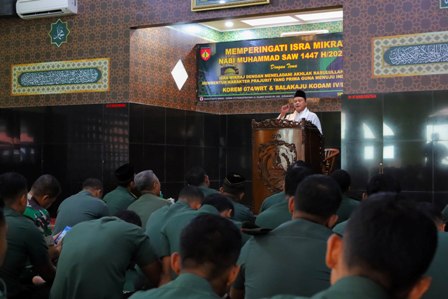 Korem 074/Warastratama menggelar peringatan Isra Mi’raj Nabi Muhammad SAW di Masjid Sapta Marga, Makorem 074/Warastratama, Kamis (22/1/2026). Kegiatan ini dilaksanakan sebagai bagian dari pembinaan rohani untuk membentuk karakter prajurit yang beriman, berakhlak, dan profesional. Peringatan Isra Mi’raj Nabi Muhammad SAW…