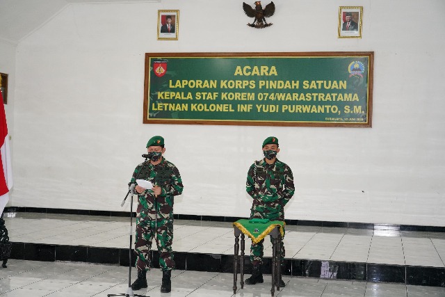 Komandan Korem 074/Warastratama Brigjen TNI Rafael Granada Baay memimpin langsung acara laporan Korps pindah satuan Kepala Staf Korem 074/Warastratama Letkol Inf Yudi Purwanto, S.M., bertempat di aula Korem 074/Warastratama, Senin (22/06/2020). Danrem mengatakan, acara Laporan Korps Kepala Staf Korem 074/Warastratama…