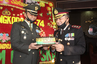 Kodim 0726/Sukoharjo dipimpin oleh Dandim dengan para Danramil dan Perwira staf memberikan kejutan ucapan Dirgahayu Bhayangkara ke 74 Tahun 2020, di Mapolres Sukoharjo (02/07/2020) dengan membawa Tumpengan nasi kuning dan kue tart sebagai simbol ulang tahun. Peringatan Hari Bhayangkara ke…