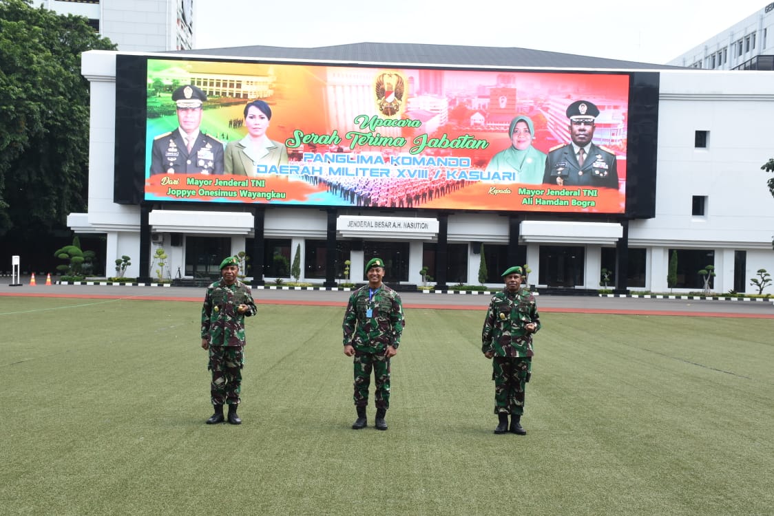 Jakarta – Kepala Staf Angkatan Darat (Kasad) Jenderal TNI Andika Perkasa memimpin upacara Serah Terima Jabatan (Sertijab) Danpusterad dari Mayjen TNI Arif Rahman kepada Mayjen TNI Joppye Onesimus Wayangkau dan Pangdam XVIII/Kasuari dari Mayjen TNI Joppye Onesimus Wayangkau kepada Mayjen…