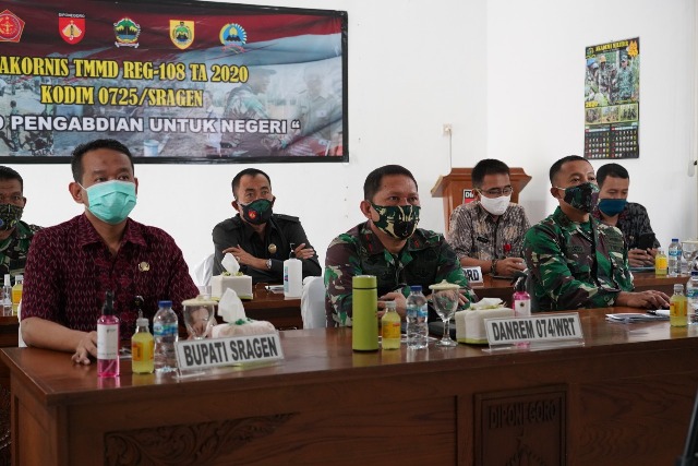 Danrem 074/Warastratama Brigjen TNI Rafael Granada Baay bersama Dandim 0725/Sragen Letkol Kav Luluk Setyanto, M.P.M. , Kasiter Korem 074/Wrt Letkol Caj Drs. Achsin, M.Si., Wakil Bupati Sragen H. Dedy Endriyatno, S.E., Ketua DPRD Sragen Suparno, S.E., Kepala Bappeda Litbang/Kepala DPMPTSP…