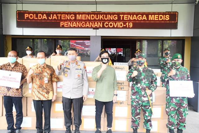 Bertempat di Polresta Surakarta, Kapolda Jateng Irjen Pol. Dr. H. Rycko Amelza Dahniel, M.Si didampingi Danrem 074/Warastratama Brigjen TNI Rafael Granada Baay dan Wakil Walikota Surakarta Drs. H. Ahmad Purnomo, Apt menerima bantuan alat kesehatan dari Gibran Rakabuming Raka, Selasa…