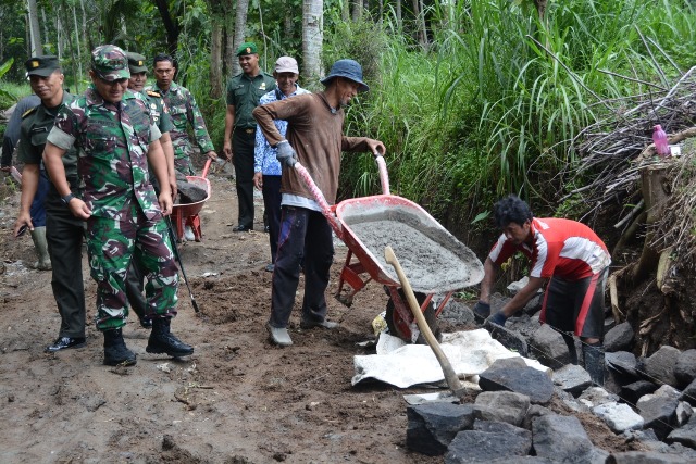 Dandim 0724/Boyolali Letkol Inf Aris Prasetyo, S.I.P di damping Perwira Seksi Teritorial (Pasi Ter) Kodim 0724/Boyolali Kapten Inf Kamami dan Danramil 03/Mojosongo Kapten Inf Budiyono meninjau secara langsung persiapan pelaksanaan TNI Manunggal Membangun Desa (TMMD) Sengkuyung tahap I TA 2020…