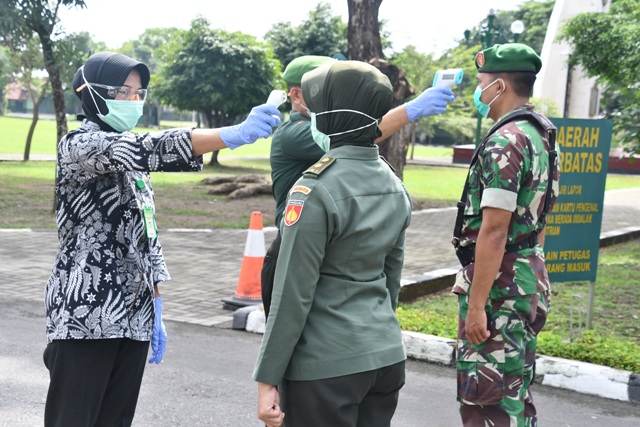 Guna antisipasi penyebaran Virus Covid-19 di Korem 074/Warastratama, Komandan Korem 074/Warastratama Brigjen TNI Rafael Granada Baay memerintahkan setiap personel yang memasuki kesatrian untuk dilakukan penyemprotan desinfektan, Jum’at (20/03/2020). Danrem 074/Warastratama menyampaikan bahwa penyemprotan desinfektan ini merupakan salah satu langkah antisipasi…