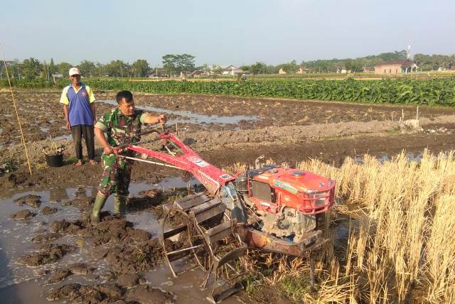 Babinsa Dukuh Koramil 08/Banyudono Kodim 0724/Boyolali Serma Kurniadi membantu petani membajak sawah milik Bapak Kardi anggota Kelompok Tani “Sejahtera” Dukuh Malangan, Desa Dukuh, Kec. Banyudono, Kab. Boyolali, Senin, (03/02/2020). Kegiatan ini merupakan salah satu upaya khusus (Upsus) TNI AD untuk…