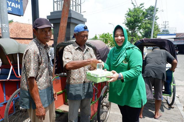 Persit KCK Cabang XLVIII Kodim 0727/Karanganyar Koorcab Rem 074 PD IV/ Diponegoro, membagikan nasi kotak dan minuman kepada para pengemudi becak, pedagang asongan dan sopir angkutan di kawasan Pasar Jungke Karanganyar, dan perempatan lampu merah Polres Karanganyar, Jum’at (7/02/2020). Lokasi…