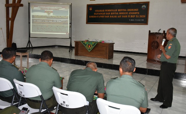 Bertempat di Aula Makorem 074/Warastratama, Prajurit dan PNS Korem 074/Warastratama serta Balak Aju Kodam IV/Diponegoro menerima ceramah Pembinaan Mental Rohani dan Pembinaan Mental Ideologi Kejuangan dari Bintal Korem 074/Warastratama, Rabu (15/1/2020). Kegiatan pembinaan mental terpadu ini sangat berguna bagi prajurit…