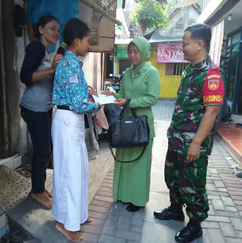 Babinsa Kepatihan Wetan Koramil 04/Jebres Kodim 0735/Surakarta Serda Budiono bersama Istrinya memberikan santunan kepada anak yatim Adinda Nanda (13) Anak dari Anis (50) RT 01 RW 2 di wilayah binaannya (22/1/2020). Serda Budiono kali ini mengajak istrinya tampak antusias mendatangi…