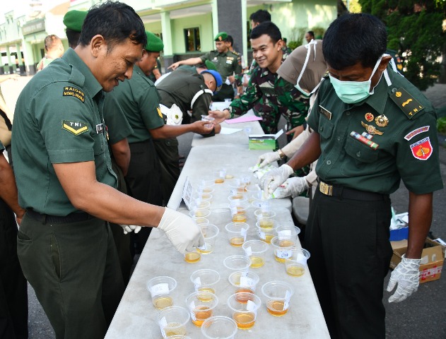 Usai melaksanakan Upacara bendera hari Senin, Prajurit Korem 074/Warastratama dan Balak Aju Kodam IV/Diponegoro menjalani tes urine secara mendadak, Senin (20/1/2020). Tes urine ini dilaksanakan oleh staf Intel yang dibantu Provost Korem 074/Wrt dan bekerja sama dengan Denpom IV/4 Surakarta…