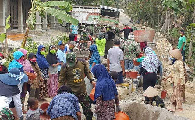 Berjalannya TMMD Reg 105 di Desa Jimbung Kecamatan Kalikotes Kabupaten Klaten, menambah semangat gotong royong yang dilakukan warga bersama TNI, untuk merampungkan semua sasaran Fisik agar cepat selesai, Minggu (21/07/19). Hal ini di semangati oleh seluruh warga baik laki laki…