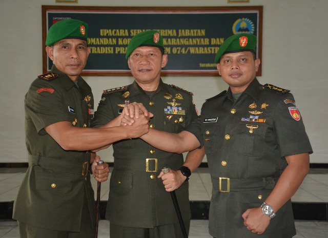 Komandan Korem 074/Warastratama Kolonel Inf Rafael Granada Baay pimpin Upacara serah terima jabatan Komandan Kodim 0727/Karanganyar dari Letkol Inf M. Ibrahim Muchtar M kepada Letkol Inf Andi Amin Latama, S.Sos., di Aula Makorem 074/Warastratama, Senin (25/2/2019). Menurut Danrem 074/Warastratama, serah…