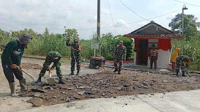 Sebagai wujud kepedulian terhadap pembangunan infrastruktur di wilayah binaan, Babinsa Desa Blangu Koramil 12/Gesi Kodim 0725/Sragen Serka Tri Mawardi turut serta membantu warga dalam kegiatan kerja bakti pengelupasan aspal lama yang akan dilakukan pengecoran ulang di Dukuh. Balak RT. 19…
