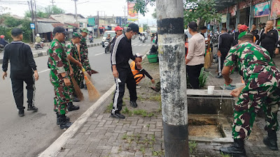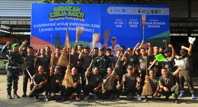 Koramil 09/Grogol, Polsek Grogol dan relawan melaksanakan kegiatan karya bhakti di lingkungan Pasar Tradisional Telukan, Jalan Solo–Wonogiri, Desa Telukan, Kecamatan Grogol, Kabupaten Sukoharjo, Jumat (20/2/2026). Kegiatan tersebut diawali dengan apel pengecekan personel, dilanjutkan kerja bakti membersihkan area pasar, mulai dari…