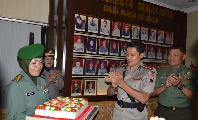 Puluhan personel TNI dari Korem 074/Warastratama dibawah pimpinan Danrem, Kolonel Inf Widi Prasetijono, menggeruduk Mapolresta Surakarta. Senin (2/7/2018). Serbuan tersebut merupakan Surprise TNI sebagai wujud ucapan selamat kepada keluarga besar Polresta Surakarta yang merayakan HUT Ke-72 Bhayangkara Tahun 2018 yang…