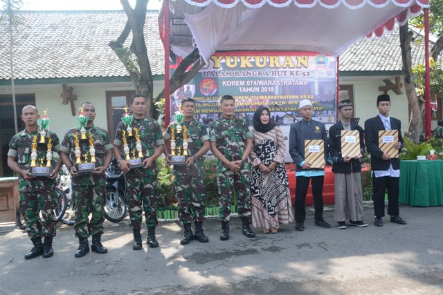 Surakarta (25/4/2018) Komandan Korem 074/Warastratama Kolonel Inf Widi Prasetijono pimpin acara syukuran dalam rangka HUT ke 52 Korem 074/Warastratama. Hadir pada acara syukuran Para Dandim Jajaran Korem 074/Wrt, Kabalak Aju Kodam IV/Diponegoro, seluruh prajurit dan PNS Korem 074/Warastratama. Dalam sambutannya…