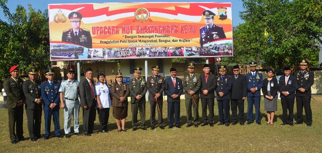 Danrem 074/Warastratama Kolonel Inf Rafael Granada Baay menghadiri upacara dan syukuran peringatan Hari Bhayangkara ke-73 di lapangan Polresta Surakarta yang mengusung tema “Dengan semangat prometer dan pengabdian Polri untuk masyarakat, Bangsa dan Negara”, Rabu (10/7/2019). Bertindak selaku Inspektur Upacara Walikota…