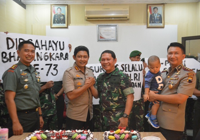 Momentum Hari Ulang Tahun ke-73 Bhayangkara tahun 2019 menjadi ajang peningkatan soliditas antara TNI dan Polri khususnya di Surakarta. Pada hari Bhayangkara ke 73 ini, Danrem dan staf memberikan surprise dan menyampaikan ucapan HUT Bhayangkara secara langsung kepada Kapolresta Surakarta…