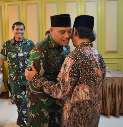Korem 074/Warastratama mengadakan buka puasa bersama sejumlah tokoh agama di Surakarta, Senin (20/5/2019). Acara buka bersama tokoh agama ini, digelar dalam rangka memperkuat silaturahmi antar pemeluk agama dalam menumbuhkan rasa kasih sayang, persaudaraan, dan saling percaya terhadap sesama umat beragama….