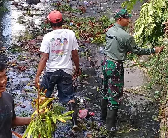 Jebres Babinsa Koramil 04/Jebres Kodim 0735/surakarta, Serka Eko Santoso dan Koptu Tarto bersama warga bergotong-royong membersihkan Daerah Aliran Sungai (DAS ) yang melintasi wilayah Pucang Sawit, Senin (29/4/2019). Pembersihan aliran Sungai ini bertujuan untuk mengangkat sampah dan rumput-rumput liar yang…