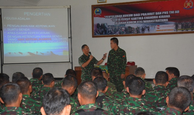 Puluhan prajurit, PNS dan Persit Kartika Chandra Kirana Korem 074/Warastratama serta Balak Aju Kodam IV/Diponegoro mengikuti penyuluhan hukum dari Tim Kumdam IV Diponegoro di aula Makorem 074/Warastratama, Senin (22/4/2019). Penyuluhan hukum tersebut dirasa penting guna menambah wawasan dan meminimalisir pelanggaran…